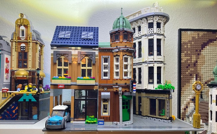 The overall angling of the two buildings is fantastic - adding access to the back alleys of other modulars when placed beside them. The general silhouette is fantastic & interesting from many viewing angles. The build is very stable & the colour choices work together in a very nice manner, both with itself and with the official modulars.