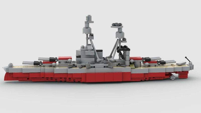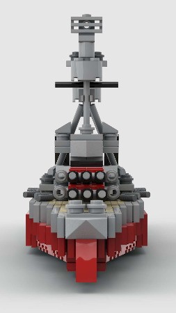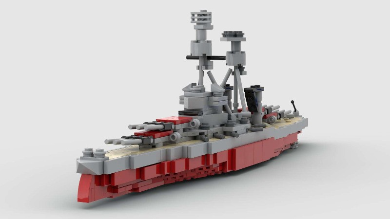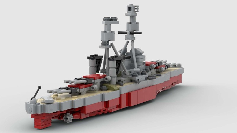 Unlike my other sets, I would recommend against attempting to build this all in new Dark Red, as there are a few parts that either are not made, or are exceedingly rare and expensive. I have not built one of these, however I have built the similar USS Nevada and (once uploaded) viewing it's MOC page should give a relatively good view on what an in person view of the model would be.