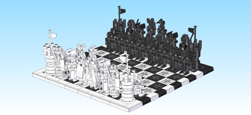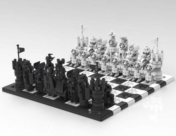 There are many Chess boards and pieces made with studded Lego, but I have not found one yet in Lego Technic. So here is one! All pieces have two axles sticking out one stud at the bottom that fits into the pin holes in the board. So the pieces are always in a good position and don't fall so easily. Would be nice if people could improve my pieces, or come up with complete new designs. Hope this set will inspire you to do this.