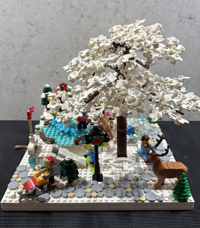 I just now finished this to add to my winter village for next year, Working my way through these awesome dioramas. I did need to add 4 slope tiles to the base of the tree to hold it onto the mils plate.