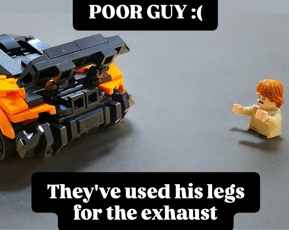 Features: You can see through the fenders and front wheel arches just like on the real car. It has an extendable rear wing that also folds up to create more drag. Although it is super tight in there there is room for two minifigs. Detailed engine cover that opens up allowing you to build an engine inside, although I have not designed one yet myself. Space to fit one suitcase behind the seats as that's the only bit of storage space the car has in real life