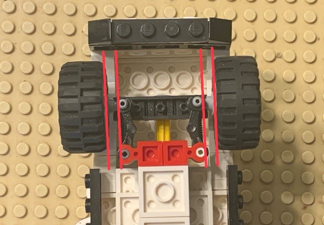 The steering is a little bit flimsy, because of the parts used (bar and clip connections). Unless you’re alright with gluing the assemblies, I don’t currently have a solution, but if the wheels aren’t aligned, all you have to do is make sure they match up with the upper bar connections:
