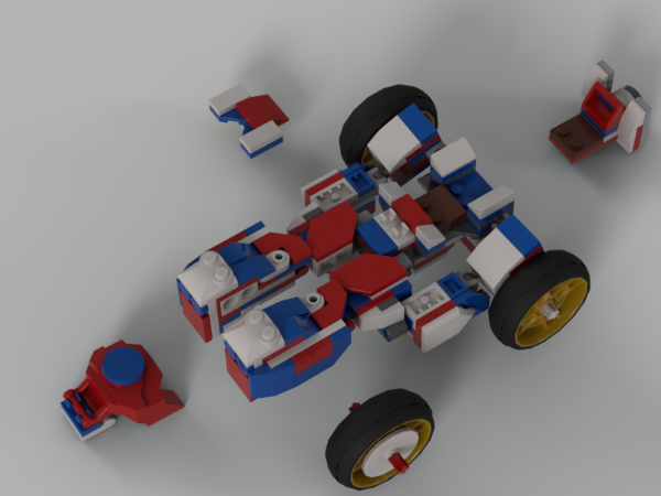 A transformable mech, a bit back-heavy, no hands included, so feel free to make something. I designed, rendered, and made the instructions for this in the lego Studio program, and I used these red, white and blue parts to make it easier to tell what's happening in the instructions, so use whatever parts you want or have, and if you can make it with these colors, well, I guess you're awesome!(you're awesome anyway though) I've included images of the mech mid-transformation and fully transformed (because I couldn't figure out how to make the transformation steps in the instructions)