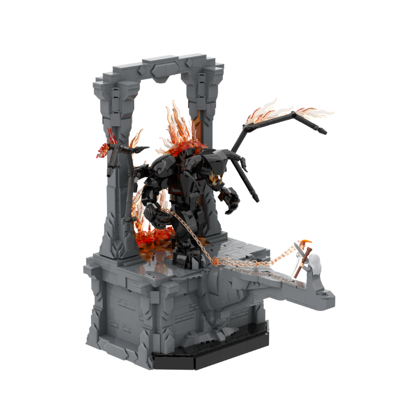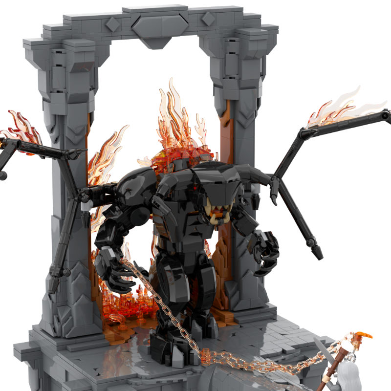 the balrog is edited to include more dark blusih gray/ black pieces where the original used light bluish gray, I also gave the balrog more flame effects on the wings and back and the effect of a glowing ribcage