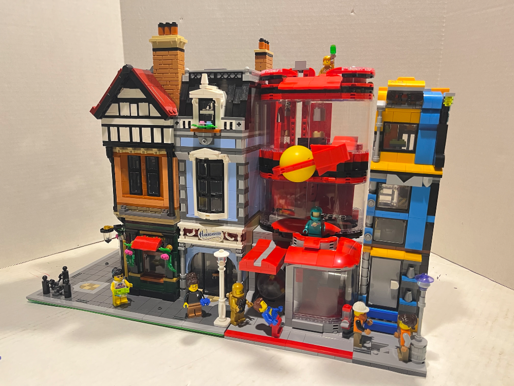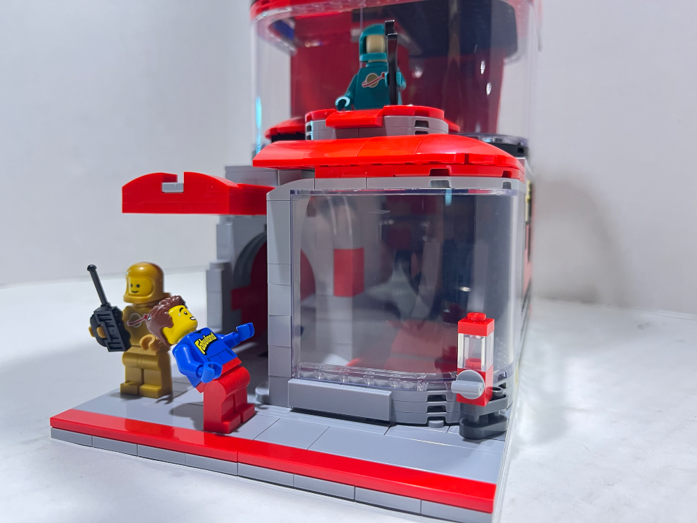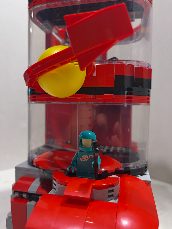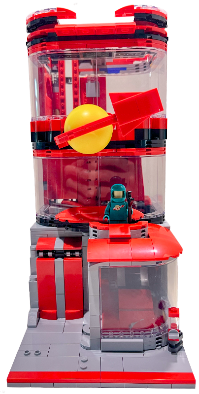 This is an alternate build of 21358 Minifigure Vending Machine. It's a training tower for future Lego Astronauts. They can join the Teal or Gold Lego Space teams if they can endure a ride up the elevator and back down through the building in one of the training capsules.