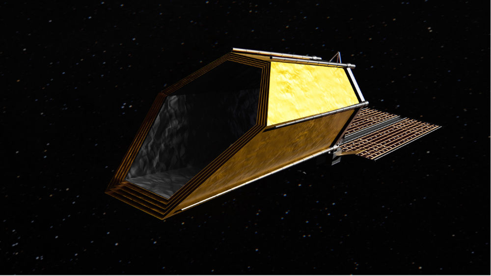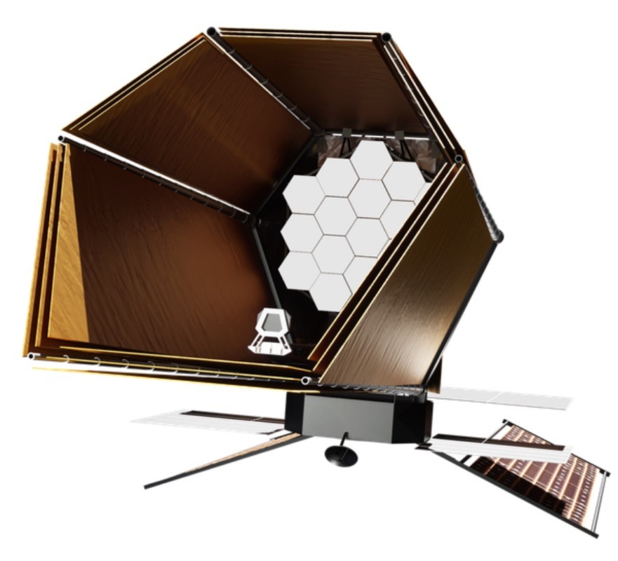 Renders of the main HWO concept NASA has been showing off in the news, based on the EAC-1 design with a different solar panel layout. This is the primary basis for this MOC