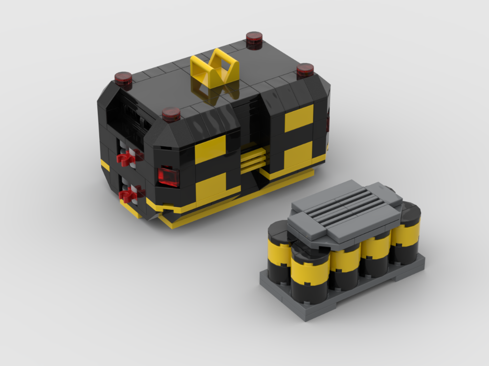 I made this module look similar to a design by 1_corn but rather than containing tools and the robot from the Blacktron Renegade, my container is meant for the transportation of radioactive materials. To have the proper markings, replace the eight 1x2 yellow bricks with the following. https://shop.brickrockpress.com/products/brick-radiation