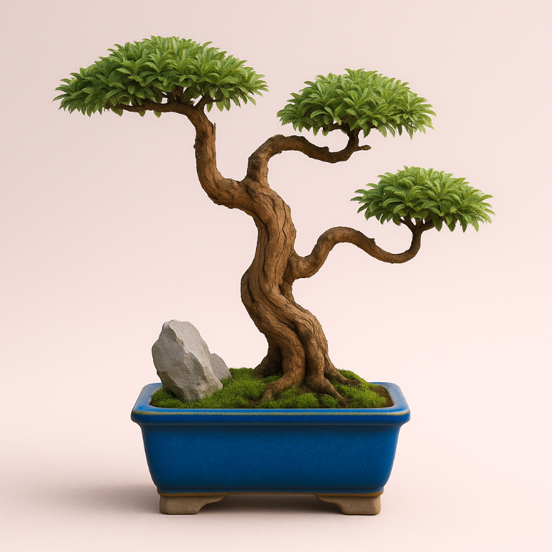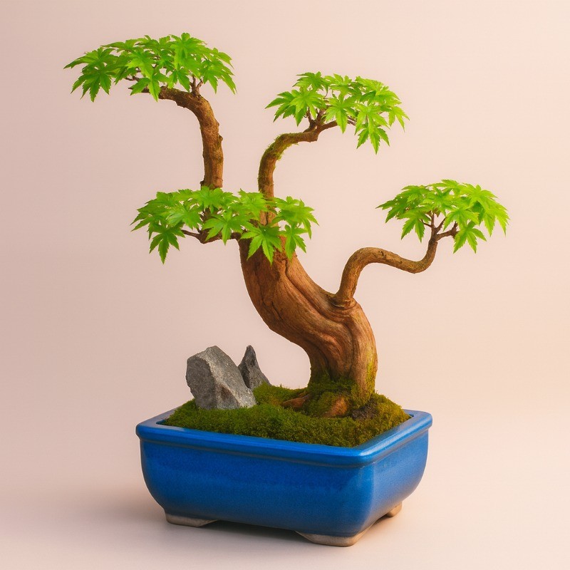 Nice trunk line, flows nicely complimented by the rocks :) I'd go with greener leaves however, like the maple ai gen shows - it somehow speaks to me :)
