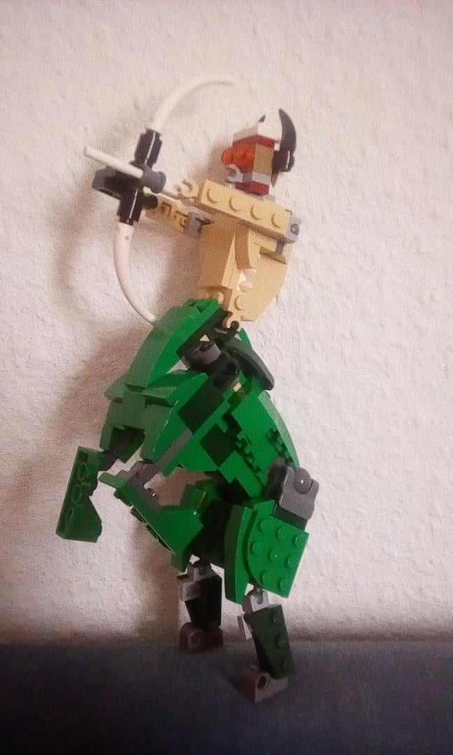 When I built it I modified it a little bit and managed to also add a bow along with an arrow from the remaining pieces. And it really can stand by itself: