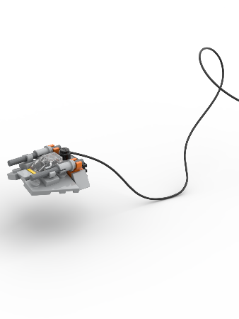 Features: This design is capable of connecting a LEGO string piece to the exposed stud in the back and then using it as a trip wire against my AT-AT model.