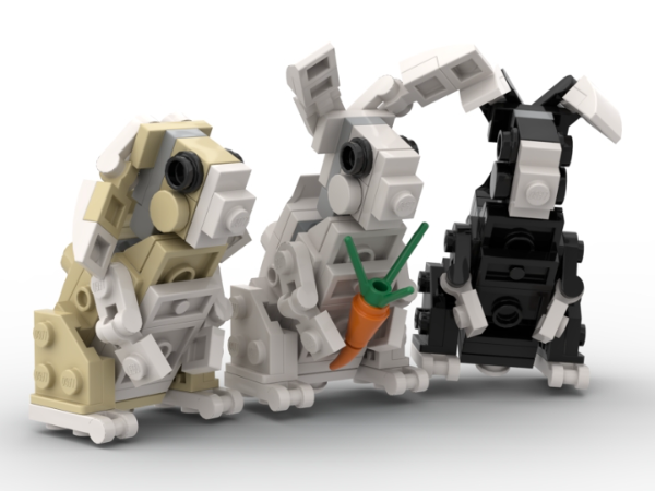 Another animal from my Woodland Creatures collection. A domesticated bunny rabbit (oryctolagus cuniculus domesticus). Features posable ears and head. Can be built in 4 solid colors (light bluish gray, white, reddish brown, black) and variation of multi-color options. See images below for other color options. Just replace all light bluish gray color parts in the inventory for the other colors.