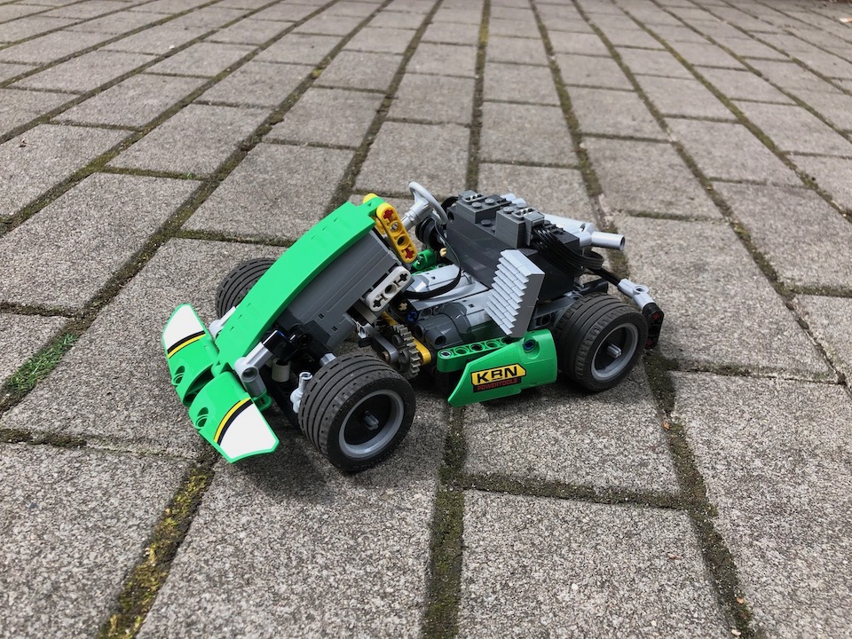 Extremely fast in Ludicrous mode, but hard to steer. Never goes really straight due to loose steering link. Building instructions use exotic parts that could easily be replaced by common ones, such as full-length bushings instead of sleeves. Some instructions unclear or finicky to build. Lots of eye-candy that can be left out to save parts. Mainly used parts from 42000, 42039 and 7347, some from 42009 and 42095 (motors, sleeves). Had to add servo separately.