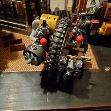 As a big fan of Steampunk-Monowheels, I realy would like to build this one. But something is confusing me: The colour you suggest for the Gas-tanks/etc (The blue-metallic?). The parts needed in this colour does not exist in it at all.