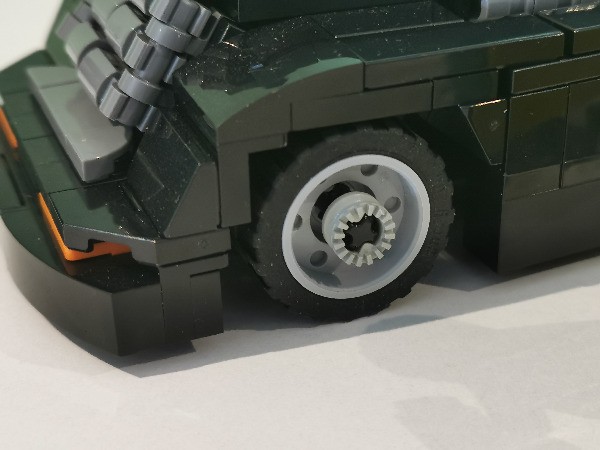 Wheel caps make a HUGE difference: When collecting the parts I made a mistake and used part 55981 in light bluish grey instead of 55982 in flat silver. I must say it makes all the difference in the world!