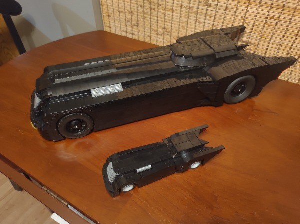 Along the build I prepared myself on coming to dislike it because it seemed larger than I had expected. But when displayed next to the other batmobiles I now see that the size fits great (see the picture I attached).
