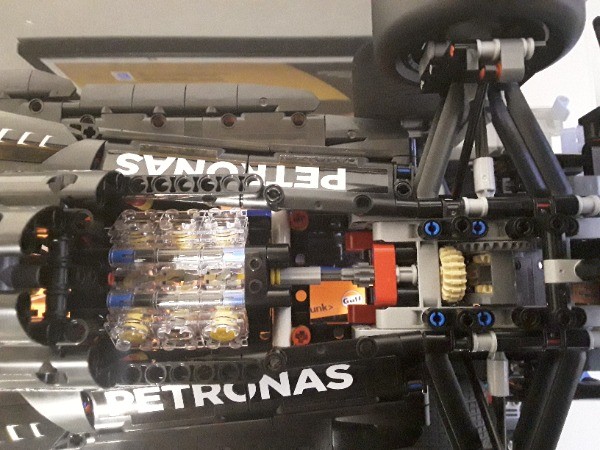 These F1 cars are rear-engine configuration, and as shown in the 6th photo, there isn't a lot of room between the working fake engine and rear axle. Lego probably chose form over function, which makes sense for an F1 car. I do have to agree with you though, so far almost all of the 2024 sets don't have any complex functions (gearbox!), instead opting to make more useless technic sets that only have a pullback motor. Fingers crossed for the summer wave, technic fans can probably expect something big.