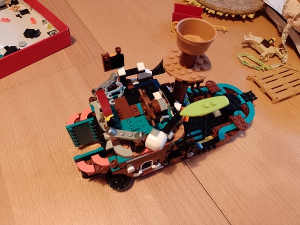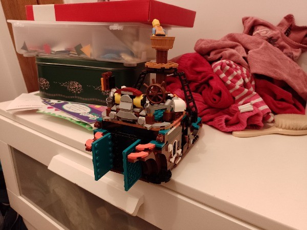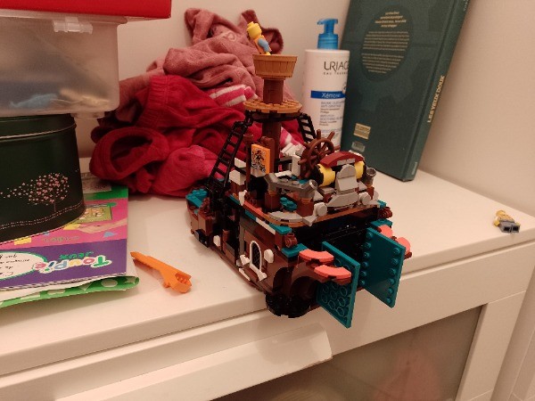I hoped I could turn it into a proper pirate ship, and at last I could try : i'm quite happy with the result, using only pieces of this set.