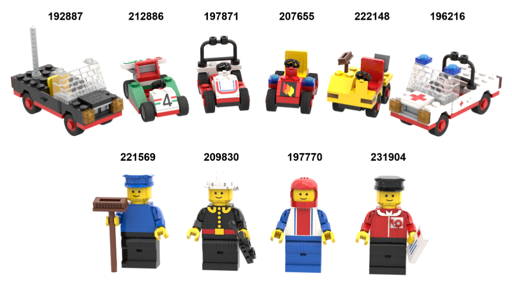Upscaled MOCs I only upscale to the 6:1 scale (6x bigger) to match the scale of the official Up-Scaled minifigures. Expanded the collection to 6 vehicles and 4 maxifigs from the 80's classic era. The most popular vehicle is the Octan Go-Kart matching the official Up-Scaled Racing Driver Minifigure, and the Fire Chief is the most popular custom maxifig.